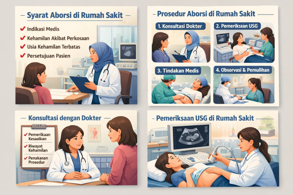 Aborsi dapat dilakukan di rumah sakit jika memenuhi syarat tertentu yang diatur oleh regulasi kesehatan. Biasanya tindakan ini hanya diperbolehkan jika terdapat indikasi medis atau kondisi khusus yang memerlukan penanganan dokter.